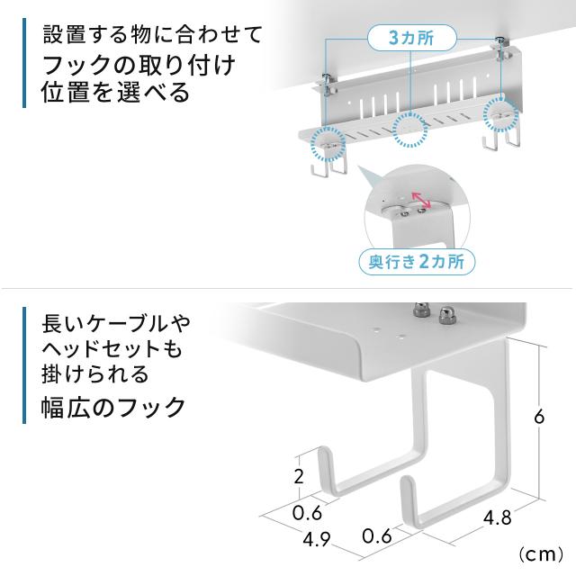 ■カラー:ブラック 200-CB050BK ホワイト 200-CB050W■サイズ:約W400×D80×H216mm(クランプ、フック取付け時)