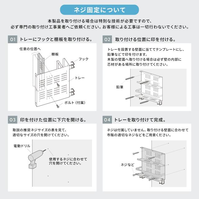 本製品を壁に取付ける場合は特別な技術が必要ですので、必ず専門の取付け工事業者へご依頼ください。