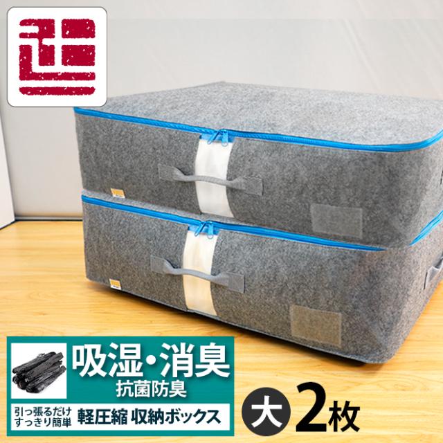 吸湿 消臭 抗菌防臭 バックルベルトの軽圧縮収納ケース 収納袋 Lサイズ お得な2枚セット