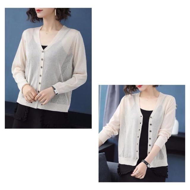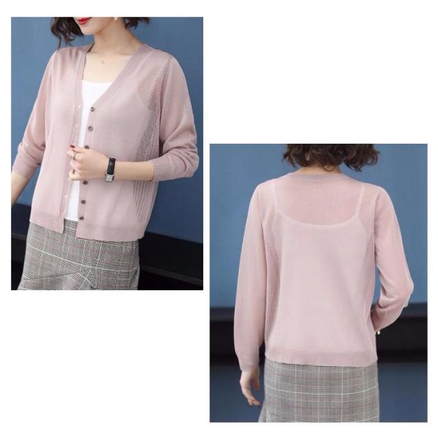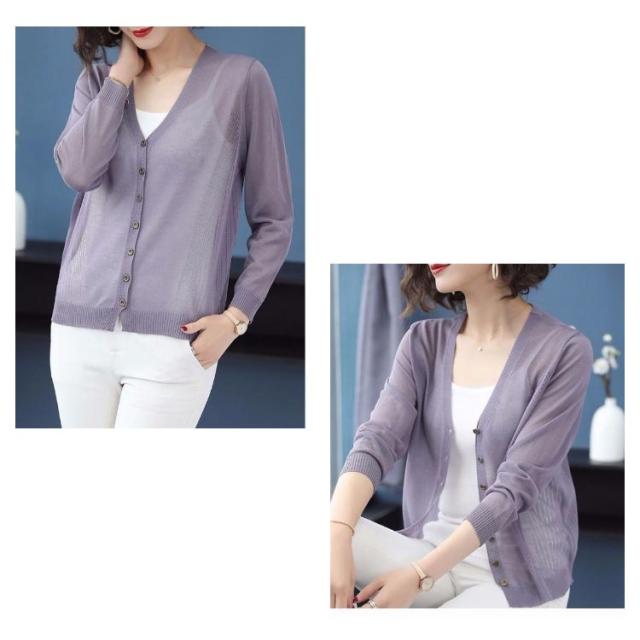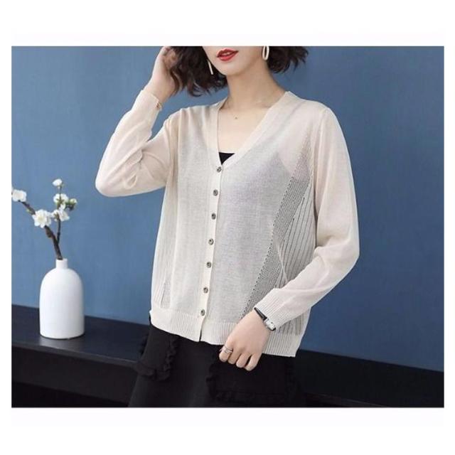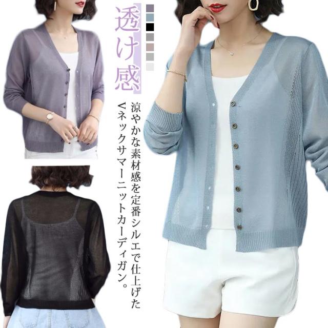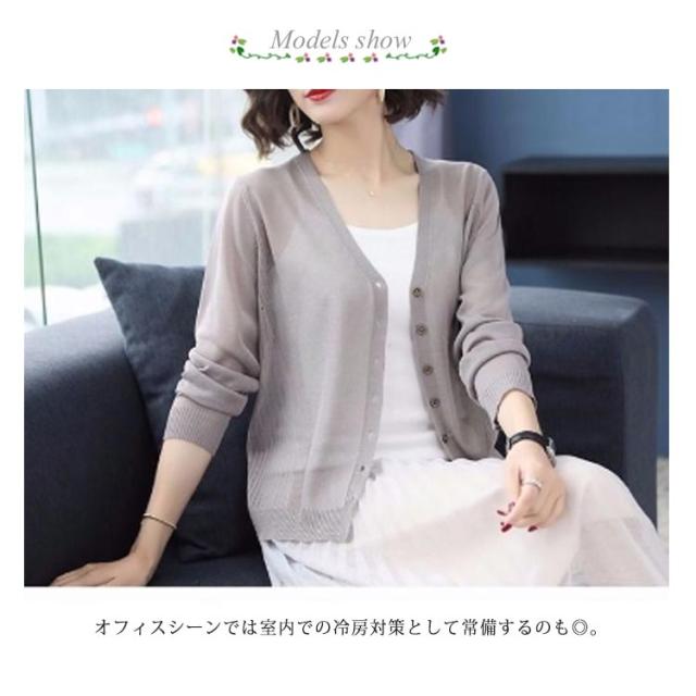冷感 薄手 トップス 送料無料 夏 長袖 Vネック ニット 紫外線 対策 レディース サマーニット カジュアル 無地 着回し 薄手 涼しい 透け感 オフィス 涼しい ショート丈 カーディガン