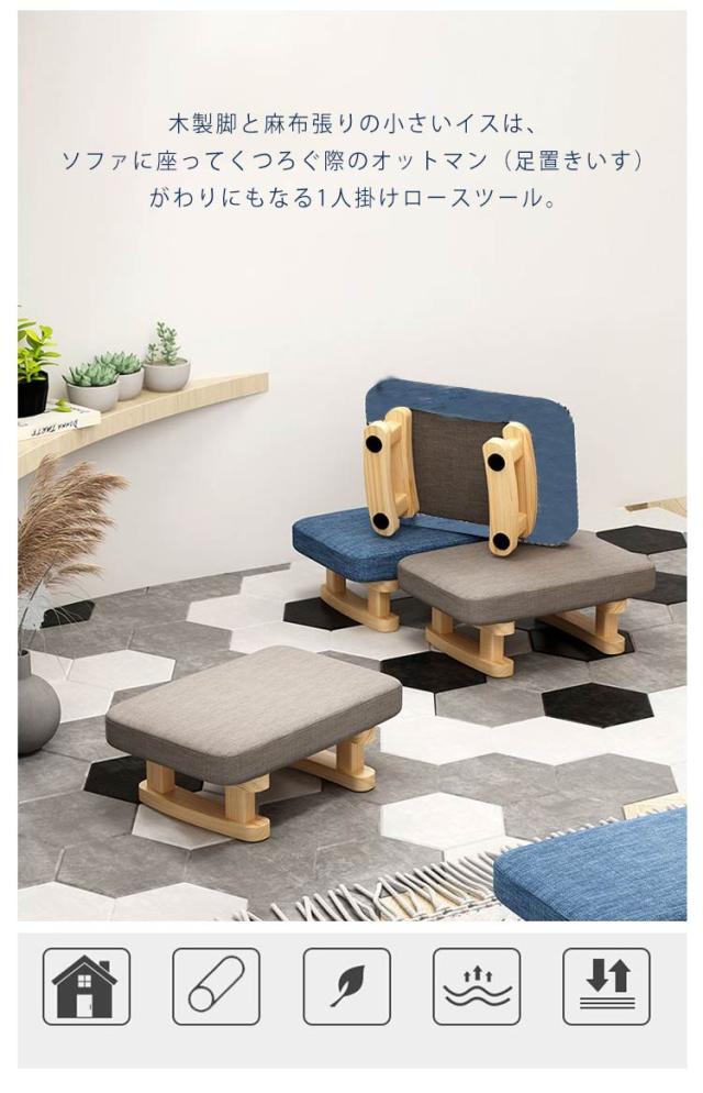 | マルチに使えるスクエアスツール 木製脚と麻布張りの小さいイスは、ソファに座ってくつろぐ際のオットマン(足置きいす)がわりにもなる1人掛けロースツール。 子供のお食事、お絵描き用、玄関で靴の脱ぎ履きに、リビングでオットマンにもピッタリ♪ スクエアの小型椅子は足付きで安定感があります。 木製の脚の底には傷防止と滑り止めが付いています。床にやさしい。 カバーは取外しでき、洗濯機で洗えます。いつでも清潔に使えて安心♪ | |