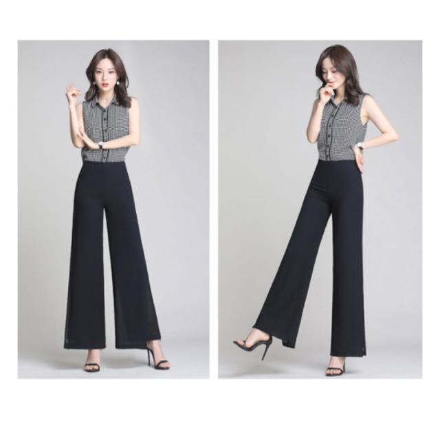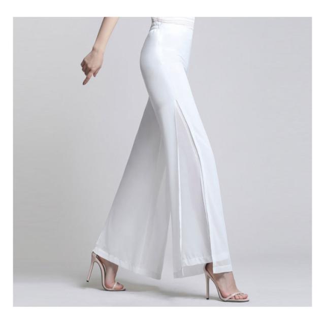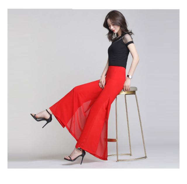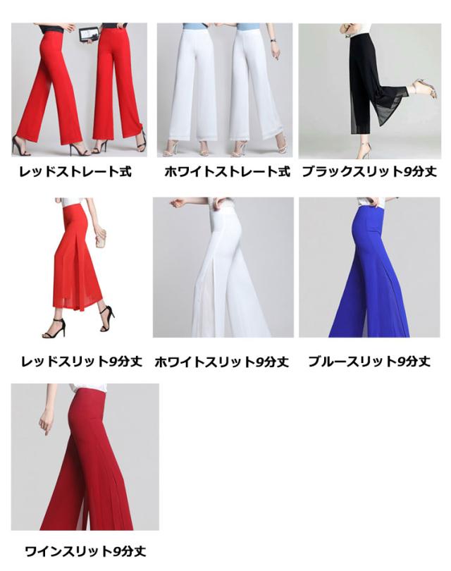 長ズボン プレゼント ハイウエスト 春 夏 シフォン ワイドパンツ 2重構造 ダンスパンツ ダンスウエア ロング丈 ハイウエストパンツ ボトムス ロングパンツ 秋 ダンス 大人 無地 スリット入り 大きサイズ 母の日 レディース ギフト ガウチョパンツ