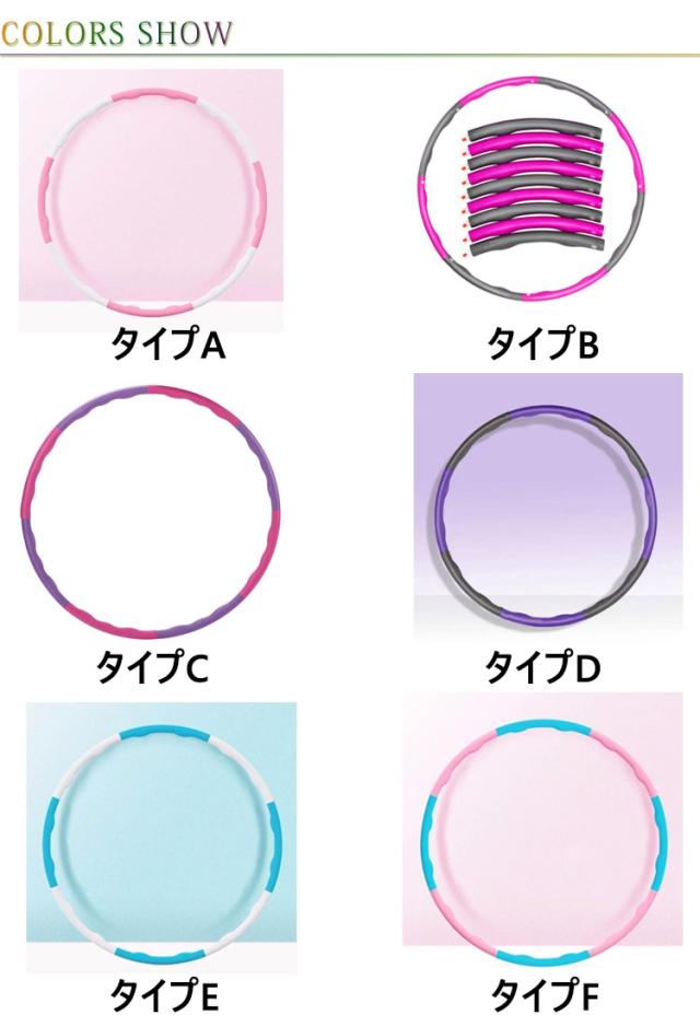 | 忙しい毎日のスキマ時間で始めるフラフープダイエット。 体のコアを鍛えて痩せやすい体をつくります。 テレビを見たり音楽を聴いたりしながら、自分のペースで気軽に運動できるのが フラフープ の良いところです! 8つのパーツに分解することで気軽に持ち運びが可能です。 PPの柔らかい素材を利用しているため、万が一床に落としても下に音が響きません。 パーツの数を調整することでエクササイズの難易度を調整することが出来ます。 インナーマッスルが鍛えられるので、骨盤のゆがみを整え、腰回りの筋肉を鍛える効果も期待できます | |