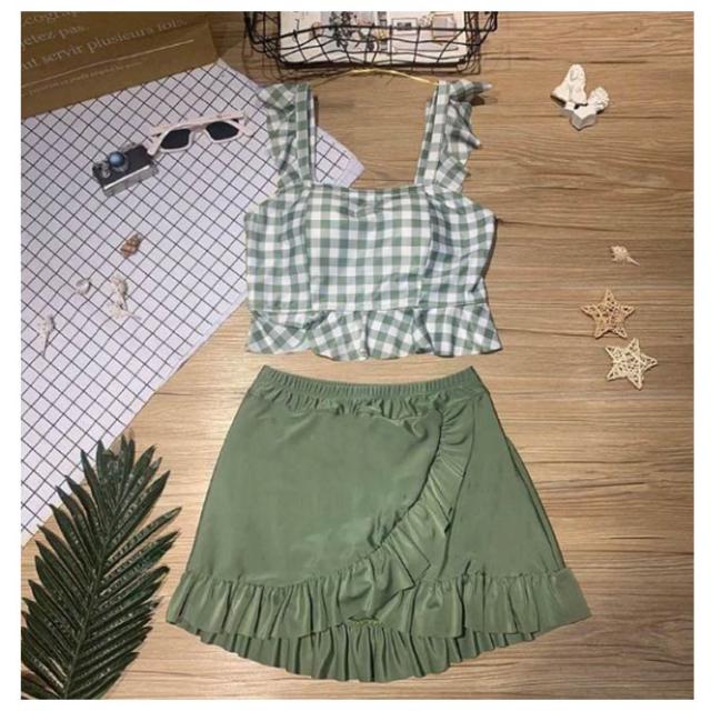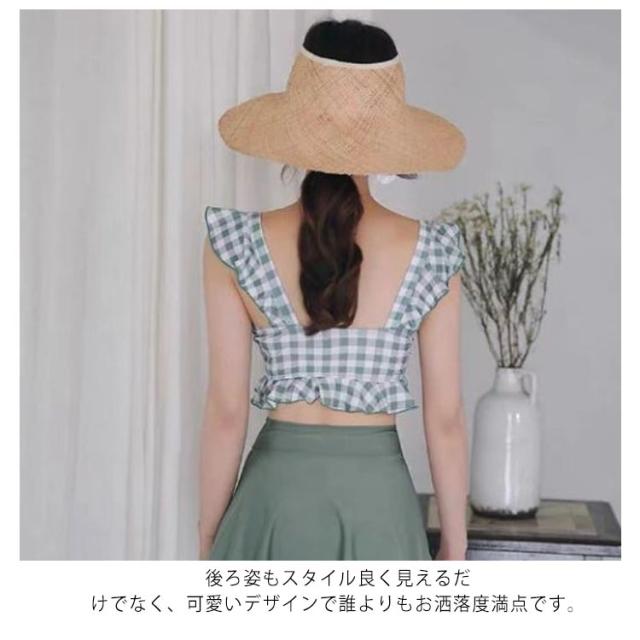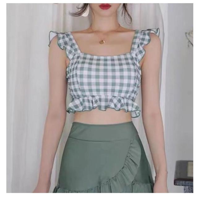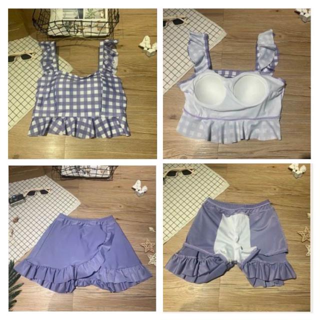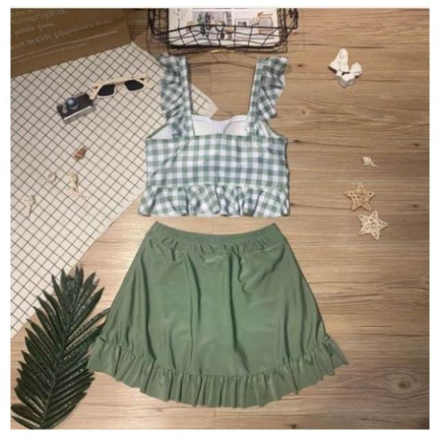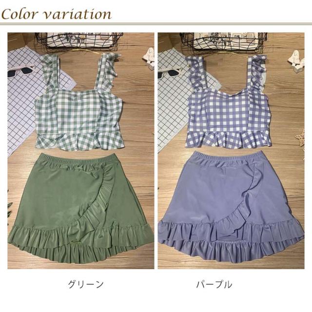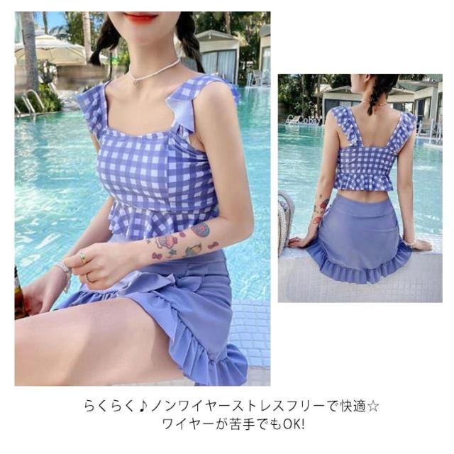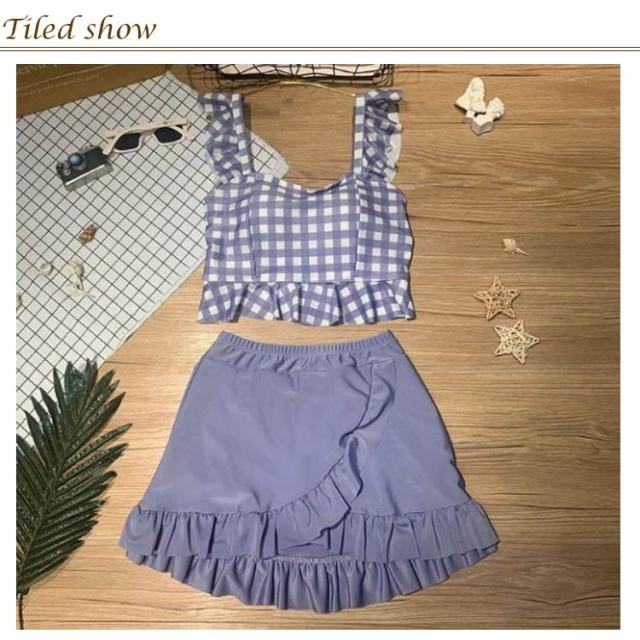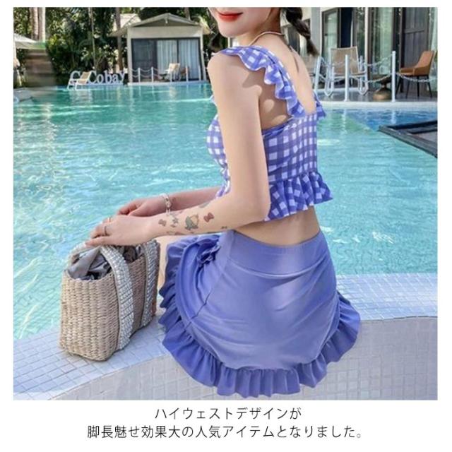 セパレート レディース 水着 中学生 チェック柄 フリル 可愛い 大きいサイズ 高校生女子 可愛い 中学生 潜水 パッド付き 10代 20代 高校生 体型カバー 海水浴 2点セット 海 ビーチ 韓国 可愛い レディース 大きいサイズ 女の子