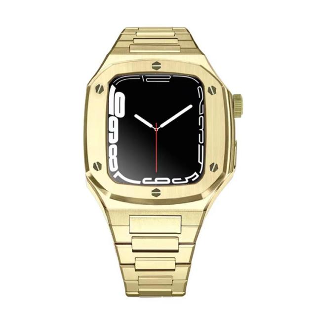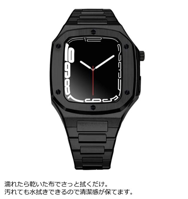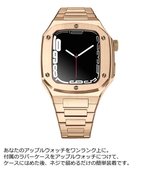 ステンレス バンド ラバー ケース カバー 腕時計 バンド watch 一体型 apple 高級ベルト アップルウォッチ メンズ ベルト 44mm 45mm 一体型 おしゃれ ピンクゴールド ステンレスストラップ シルバー ブラック ゴールド ケースバンド