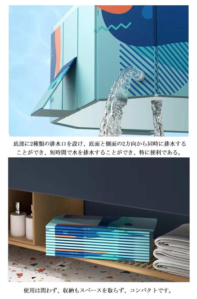 | 【空気入れ不要、使用便利】このプールは、わざと組み立ても空気入れも不要、拡張して使用できる折畳式で、すぐ使えて準備が楽チン! 【コンパクト】使用は問わず、収納もスペースを取らず、コンパクトです。 【安全無毒PVC材質・滑り止め加工】安全無毒のPVC材質を採用し、舐めたり噛んだりする子供やペットがいても安心です。 【安全性と耐久性】側面と底面の滑り止め加工を加え、安全性と耐久性をUPします。 【排水が早く便利】底部に2種類の排水口を設け、底面と側面の2方向から同時に排水することができ、短時間で水を排水することができ、特に便利である。 【滑り止め、ペットと子供に安全】折りたたみ式プールは、内壁と底の両方に厚い滑り止め素材を備えており、水を楽しんでいるときに滑りや落下を防ぎます。 【広範な用途】屋外プール、バスタブ、おもちゃの箱、1台3役で1年中使える! | |