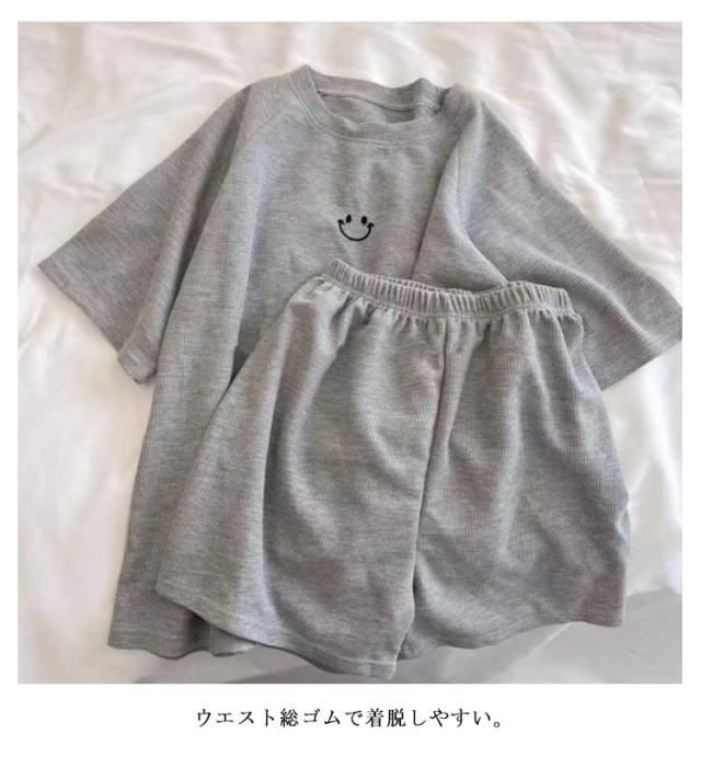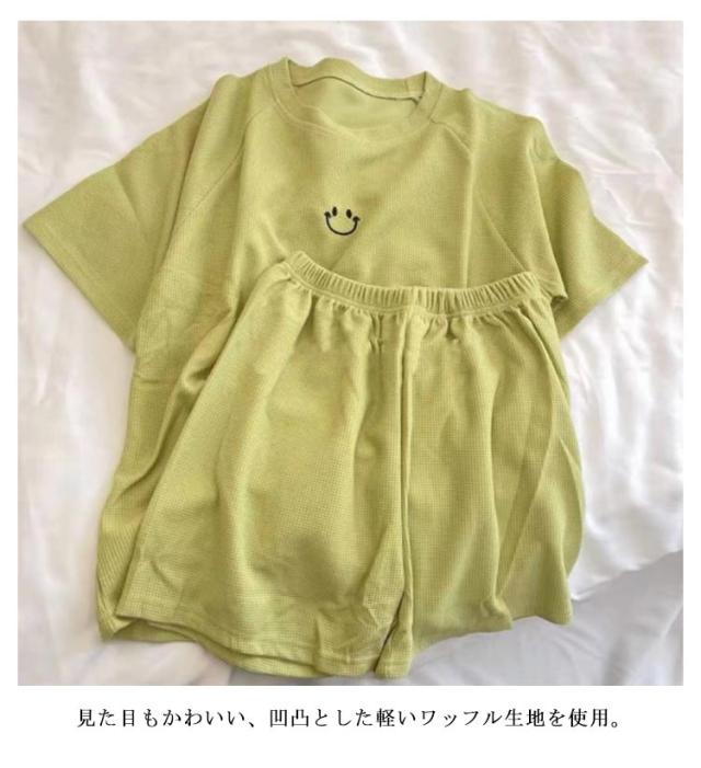 セットアップ ルームウェア 上下セット 夏 ワッフル パジャマ 薄手 夏用 刺繍 半袖 ショートパンツ 2点セット ワッフル生地 レディース 部屋着 ナイトウェア Tシャツ 寝間着 リラックスウェア ゆったり かわいい ウエストゴム 大きいサイズ 女性 春 半ズボン