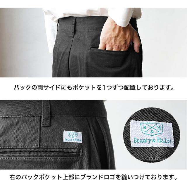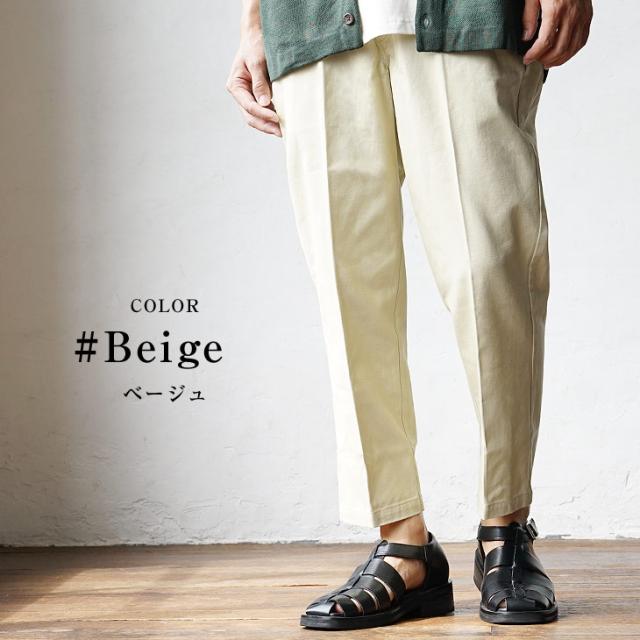 穿くだけできれいめコーデが完成するように計算されたワイドチノパンツ。テーパードが効いたシルエットと絶妙なアンクル丈が、穿くだけでスタイルアップの効果をもたらしてくれます。またセンタープレスが効いているので、カジュアルになりすぎない洗練されたデザインに。コットン100%使用したツイル生地のためしっかりとした肌ざわりと、程よい厚みが実現されたアイテム。夏は暑すぎず、冬は寒くなりすぎない1年を通じて愛用いただけるパンツです。