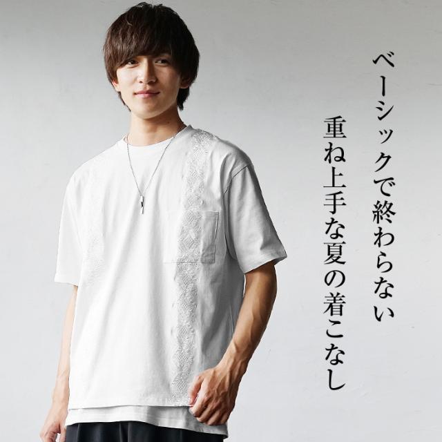【上品な重ね着スタイル】オーバーサイズ 半袖tシャツ メンズ 2点セット tシャツ 重ね着 メンズ アンサンブル メンズ レイヤード 2点セット マイノリティ