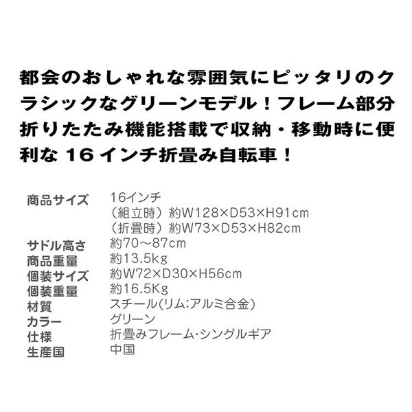 16インチのコンパクトサイズの折りたたみ自転車