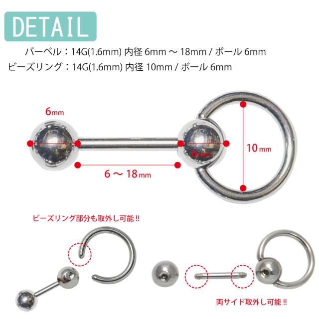 バーベルとしてもビーズリングとしても使用可能です。