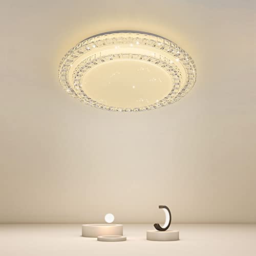 YOULIN LED シーリングライト 星空効果 10畳-12畳 調光タイプ 照明器具 3段階調色 天井照明 リビング 居間 食卓 寝室 子供部屋 廊下 華麗な二重ファンシー水晶 おしゃれ 室内照明 リモコン付き スリープタイマー設定 L
