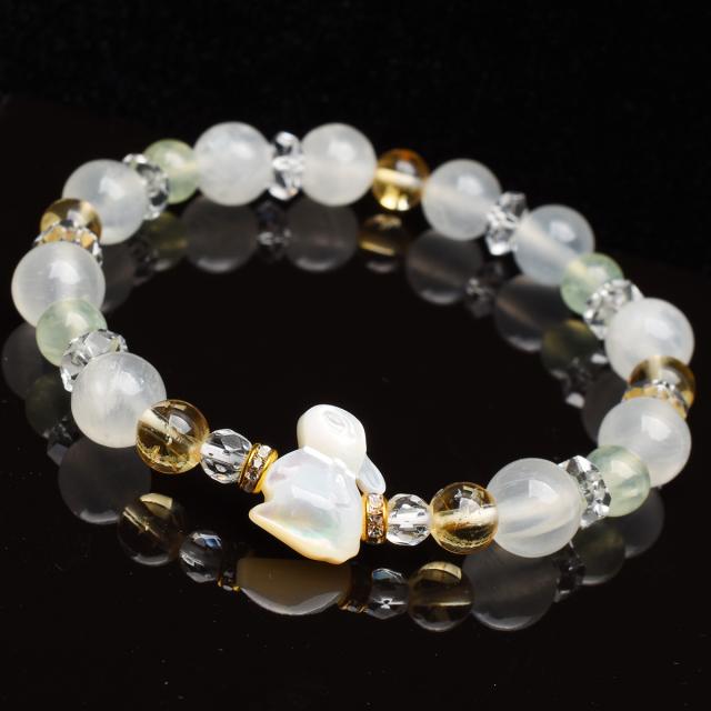 うさぎ 目標達成 飛躍 シトリン ホワイトシェル ホワイトカルサイト プレナイト 水晶 クォーツ ブレスレット アクセサリー パワーストーン 天然石 かわいい 卯 干支守 _A1240