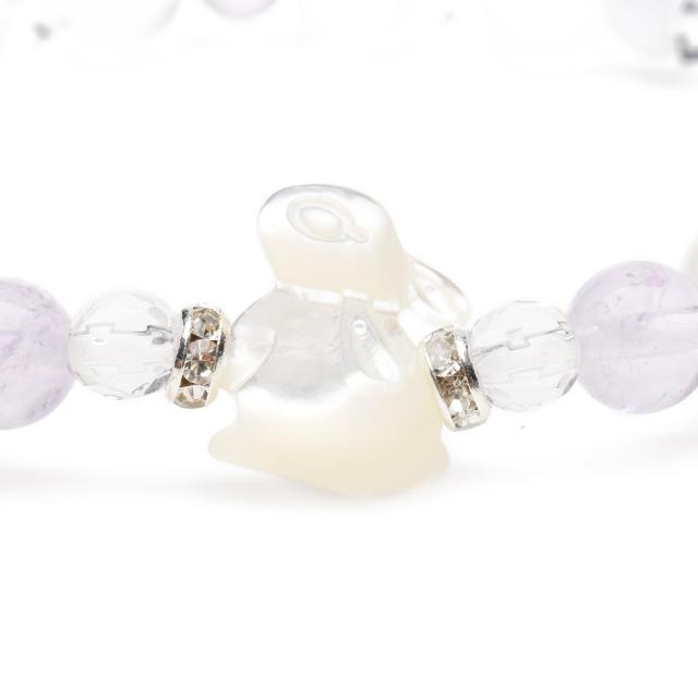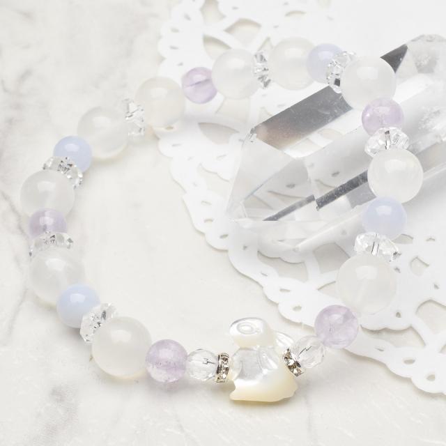 うさぎ ヒーリング 飛躍 ブルーレースアゲート ラベンダーアメジスト ホワイトシェル ホワイトカルサイト 水晶 クォーツ ブレスレット アクセサリー パワーストーン 天然石 かわいい 卯 干支守 _A1241