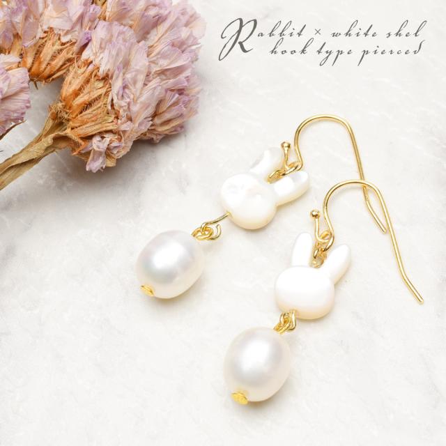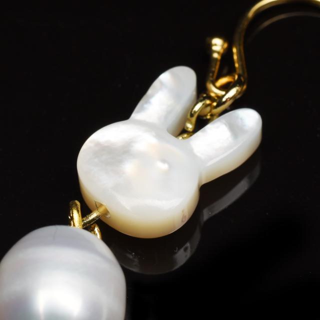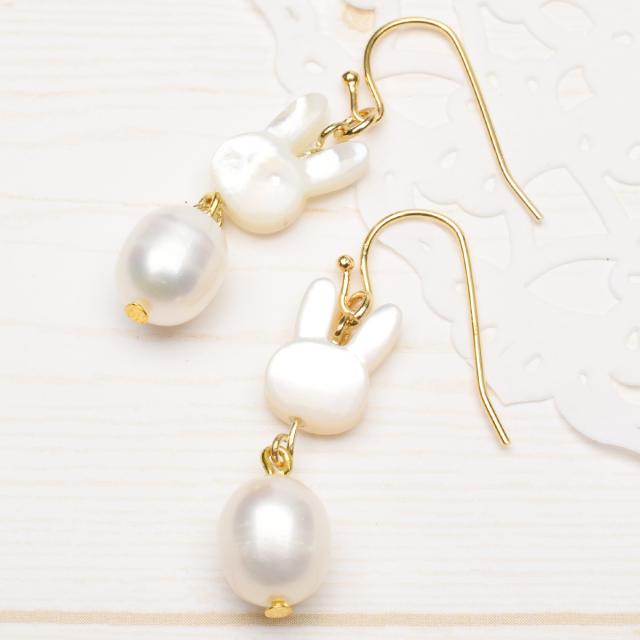 うさぎ 飛躍 淡水真珠 パール ホワイトシェル フックピアス アクセサリー パワーストーン 天然石 かわいい 卯 干支守 _A1246
