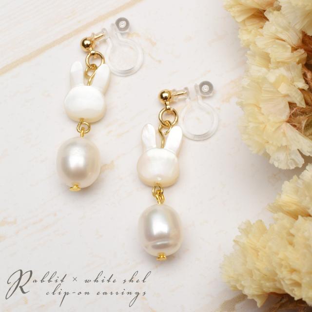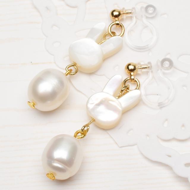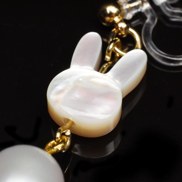 うさぎ 飛躍 淡水真珠 パール ホワイトシェル ノンホールピアス イヤリング アクセサリー パワーストーン 天然石 かわいい 卯 干支守 _A1248