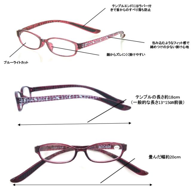 老眼鏡 おしゃれ ブルーライトカット レディース ムーミン 首かけ 老眼鏡 長いテンプル リーディンググラス シニアグラス MOR-001 パープル ムーミン レッド リトルミィ エメラルド スナフキン かわいい 1.5 2.0 2.5 3.0 3.5 プレゼント ギフト 花以外 実用的
