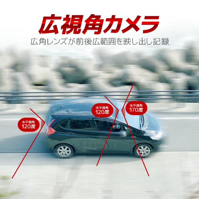 レンズ視野角:フロント/水平170度、リア、車内/水平120度