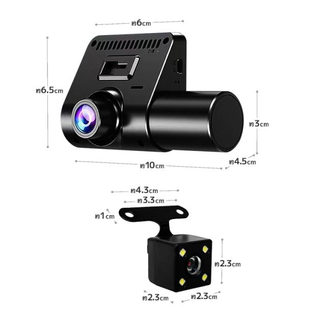 ドライブレコーダー寸法:(W)約10cm×(H)約6.5cm×(D)約4.5cm