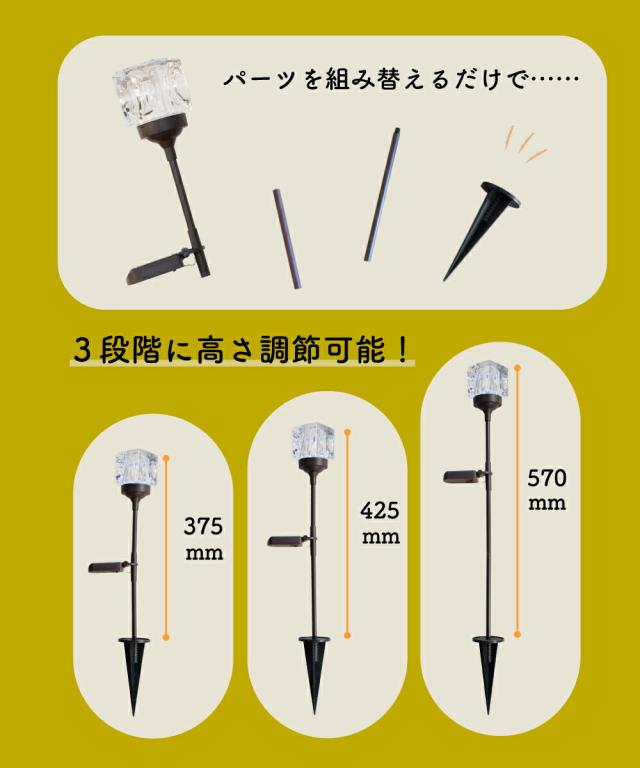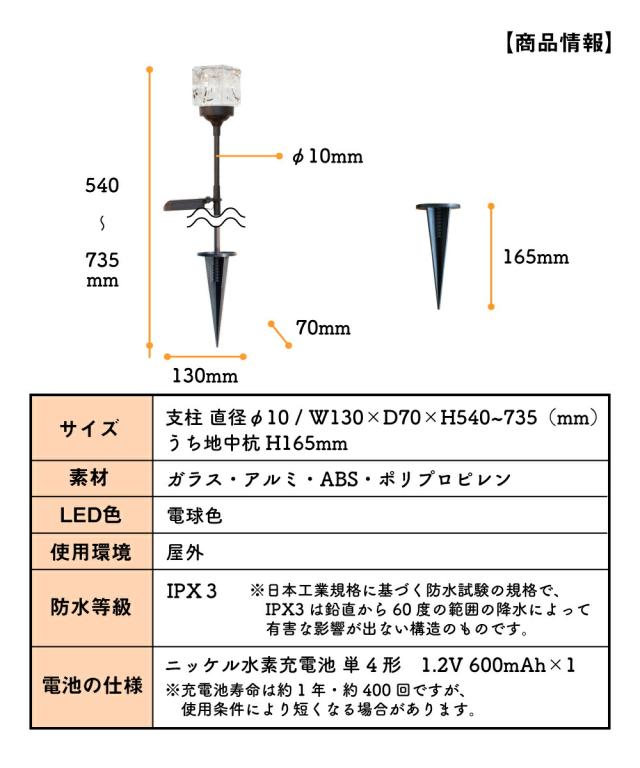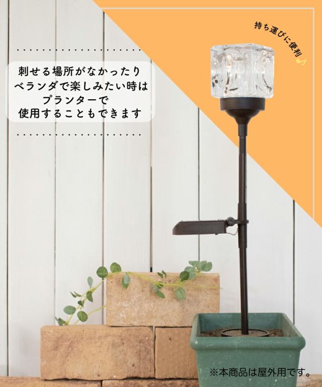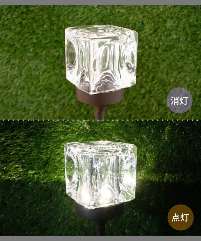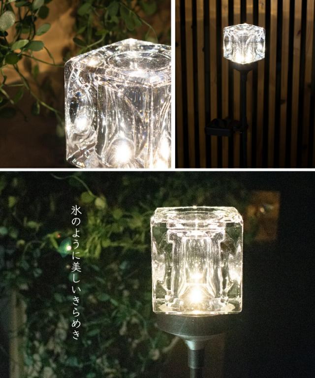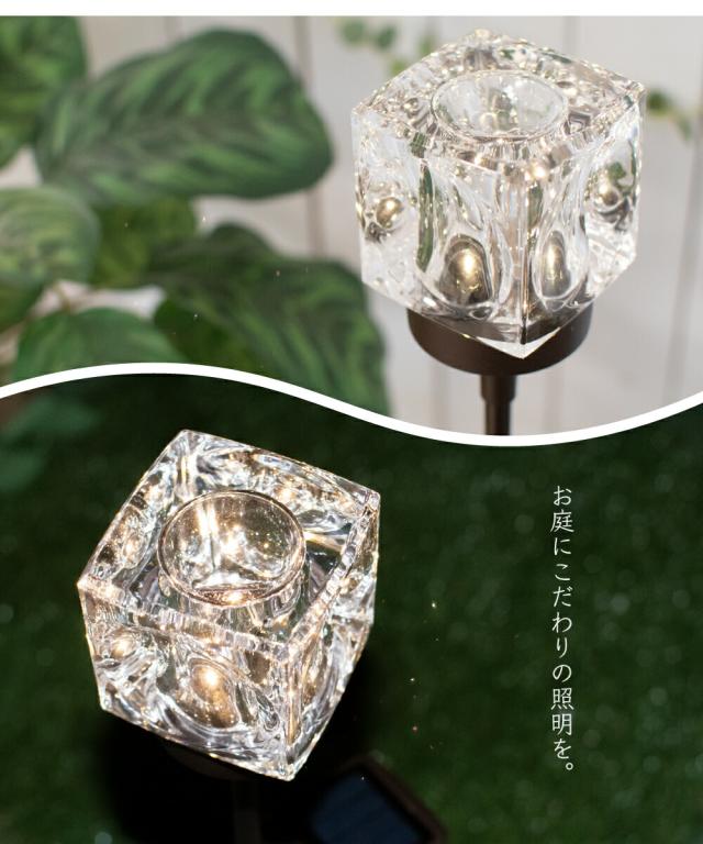 ガーデンライト ソーラーライト 照明 おしゃれ ガラス ソーラー ライト ランプ 屋外 ガーデン 庭 自動点灯 防水 太陽光 発電 充電 LED 電球色 外灯 野外 防犯 キラキラ キューブ スクエア エレガント エコ インテリア LED 太陽光発電 電気代不要 Cube STICK KL10389