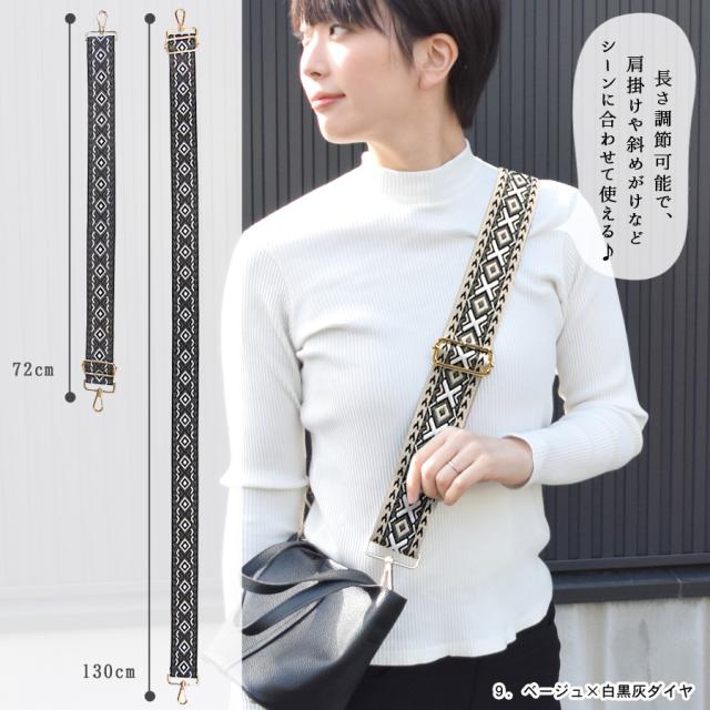 ショルダーストラップ ショルダーベルト 太め 幅広 ジャガード 編み込み 単品 付替え レディース バッグ用 小物 交換用 肩掛け 斜めがけ 長さ調節 お洒落 マルチ バイカラー エスニック チェック カラフル 迷路柄 送料無料 (cn0677)