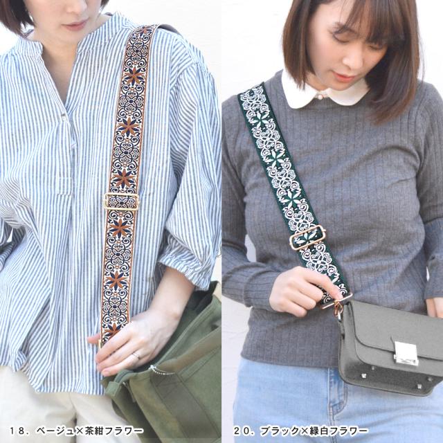 【ショルダーベルト 幅広 刺繍 太め ジャガード 編み込み ショルダーストラップ 単品 付け替え レディース バッグ 小物 ベルト 交換用 肩掛け 斜めがけ 長さ調節可 花柄 フラワー エスニック モード 迷路柄 チェック カモフラ お洒落 幾何学 モザイク カモ柄 厚手 頑丈 バイカラー 配色切り替え】