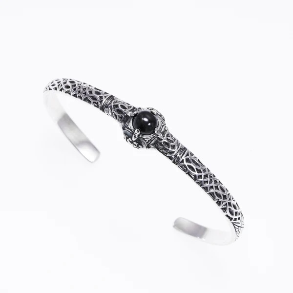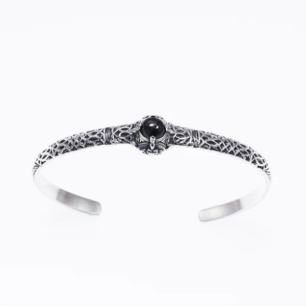 バングル全体に美しい彫りが施され中央にはブラックスターをセット。