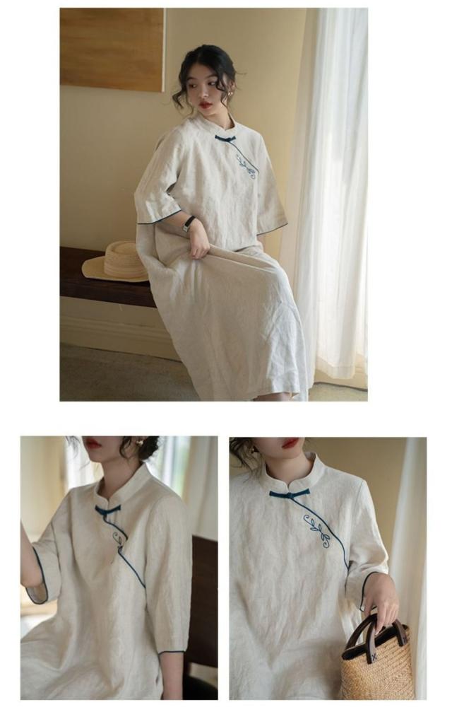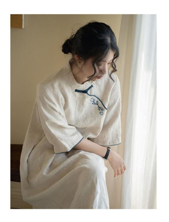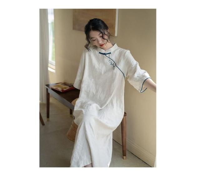 ロングワンピース マキシワンピ ワンピース レディース 半袖 大きいサイズ 中国風 無地 シンプル 産後 妊婦 大人 カジュアル ゆったり