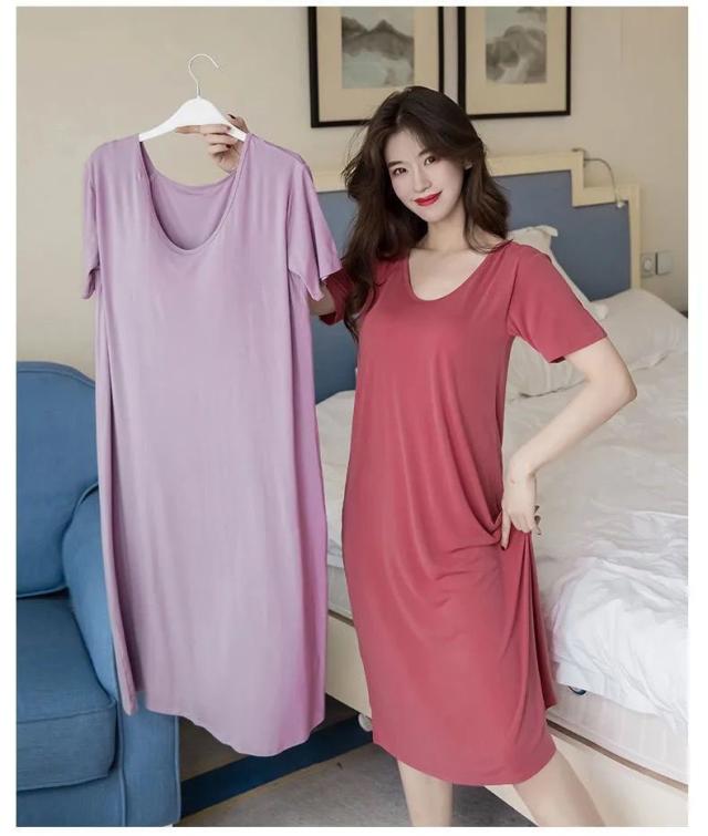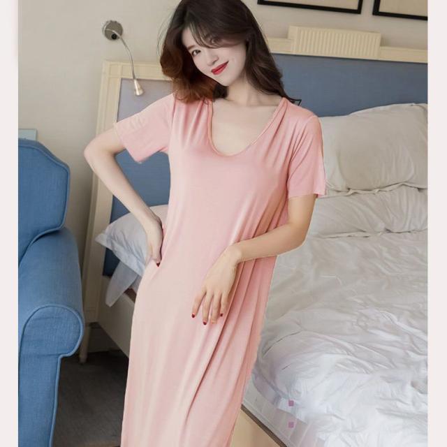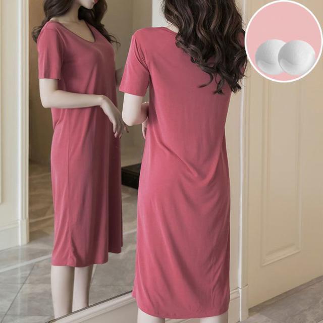 パジャマ カップ付き ルームウェア 夏 半袖 ワンピース レディース 夏用 可愛い 縞柄 部屋着 ナイト 大人 丸首 大きいサイズ
