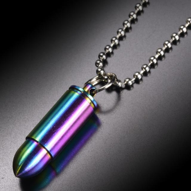 チタン合金製 薬莢型 防水カプセル チェーン付 [ レインボー ][rev435347]