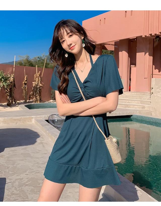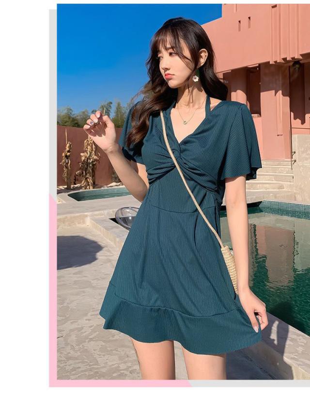 水着 レディース ビキニ ワンピース パッド付き 体型カバー 大きいサイズ 着?せ 20代 30代 オトナ女子 高校生 露出控えめ シンプル