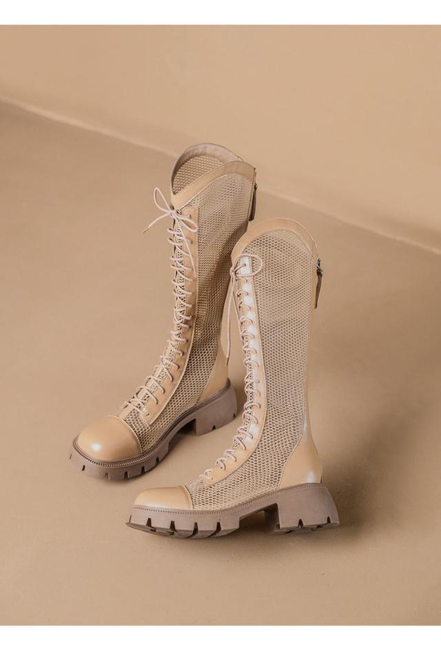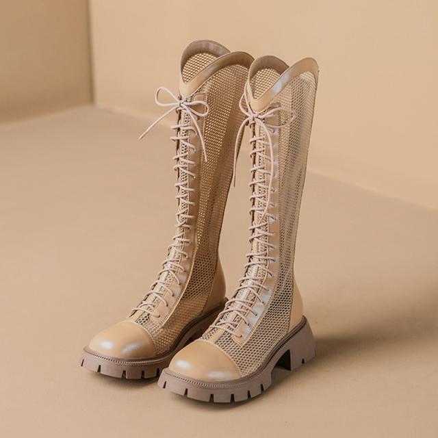 ブーツサンダル レディース ロングブーツ 編み上げ 厚底 メッシュ ブーツ 歩きやすい サマーブーツ 編み シースルー 透け感 美脚