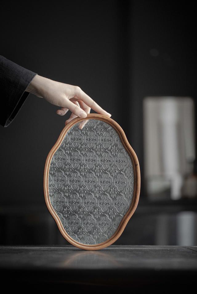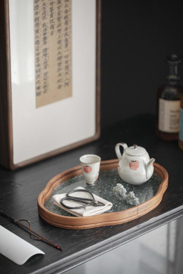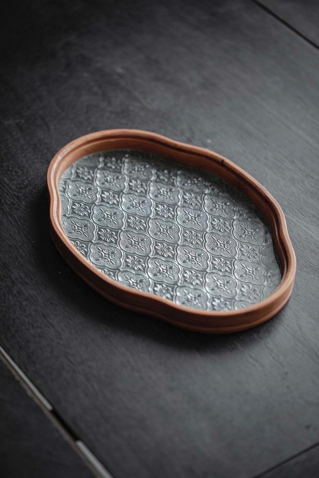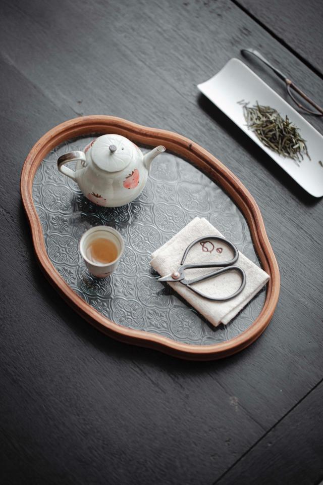 お盆 トレー 耐熱ガラス 木製 トレイ 茶席 おしゃれ インテリア 小物入れ レトロ 茶道具 中国茶器 急須受台 急須置き ティートレー お家カフェ 茶托