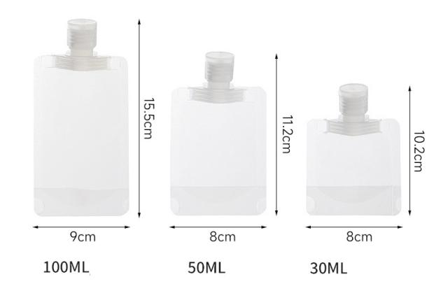 30ml 50ml 100ml トラベルボトル 10個セット 使い捨て シャンプー 詰め替え 小分け トラベル 液体個包装 漏れ防止 パウチ容器 パウチボトル 携帯 旅行 コスメ 化粧水 乳液 消毒液 調味料 半透明