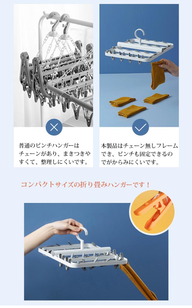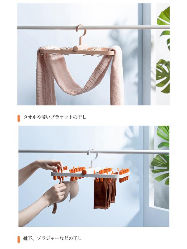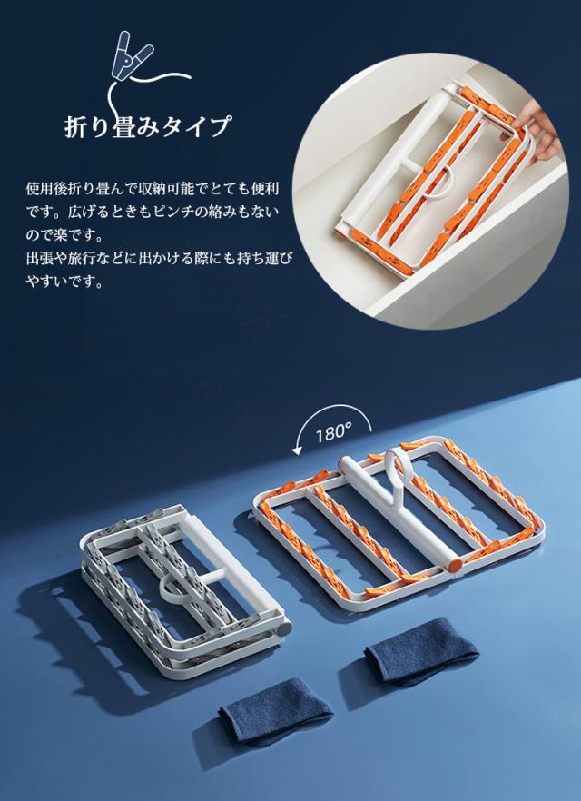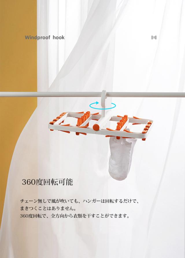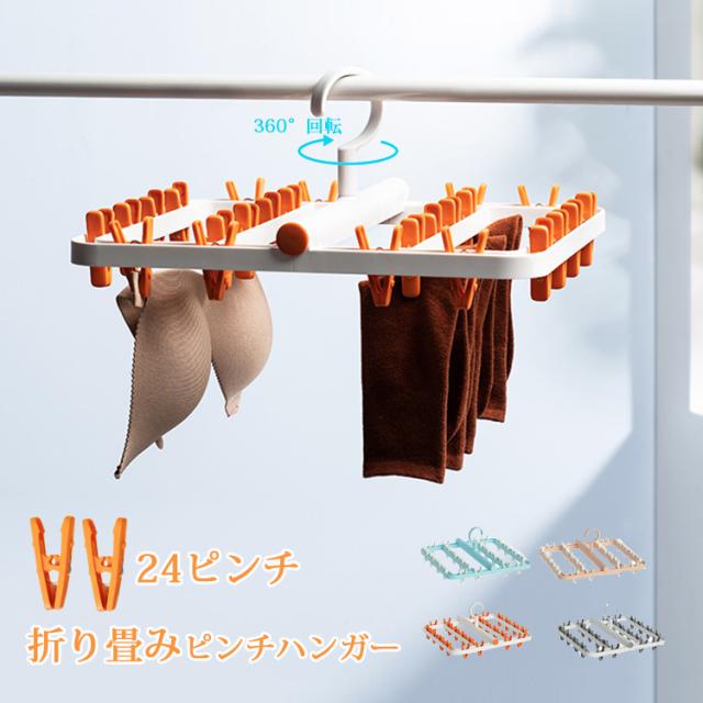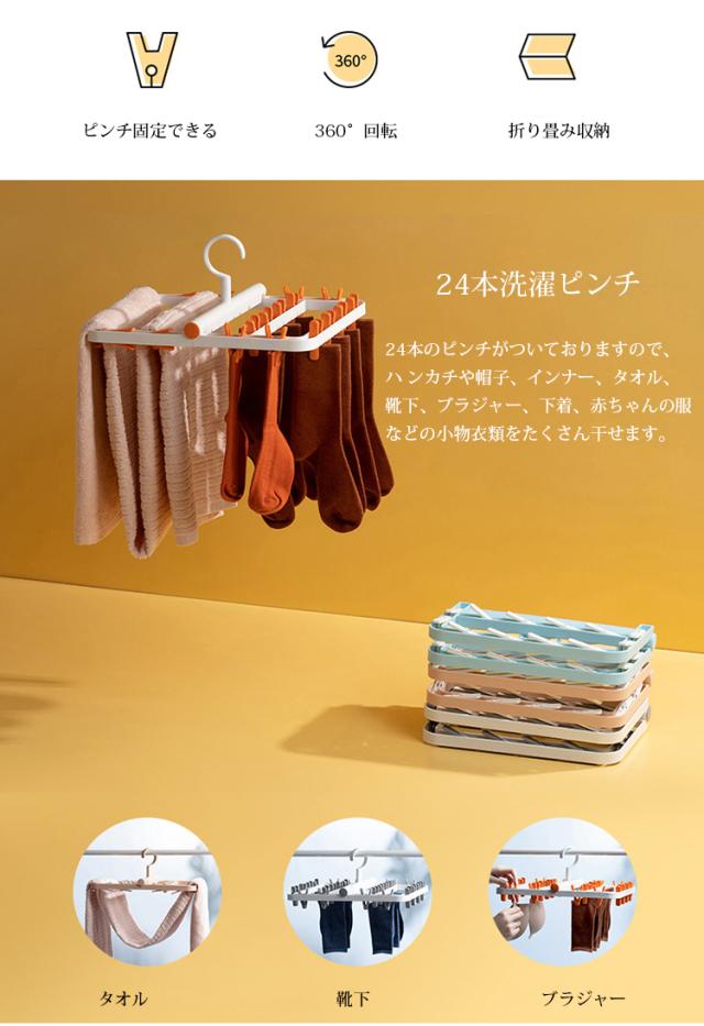 ピンチハンガー 折りたたみ式 物干しハンガー 洗濯物干し 靴下ハンガー 24ピンチ 洗濯ハンガー 防風設計 360度回転可 小物まとめ干し 強力なピンチ コンパクトに収納 小物ハンガー 靴下/下着/タオル/ブラジャー/ネクタイ