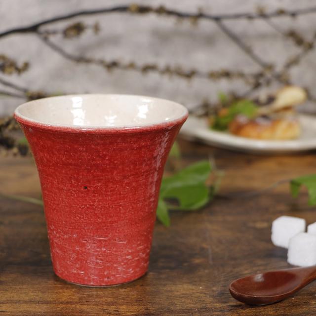 信楽焼 フリーカップ おしゃれ 280cc(満水時) ビアカップ タンブラー 陶器 和食器 国産 かわいい うつわ カップ コップ ビアグラス 焼き物 食器 彩雲(赤)フリーカップw402-10