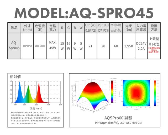 LEDSTAR モデルSPRO AQ-SPRO45 水槽 ライト LED RGBW 【PSE認証 技適認証済】 メーカー正規保証 正規代理店 アクアリウムライト スマホ操作 水槽ライト パルダリウム 熱帯魚 メダカ ledstar 45cm 水槽対応 上置型 吊り下げ型