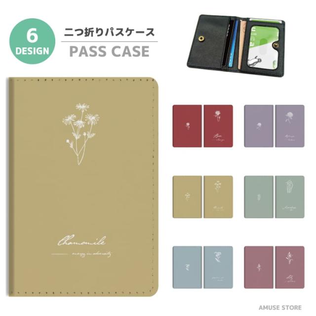 2つ折り パスケース 定期入れ カード 紛失防止 ストラップホール付 カバー 高級感 軽量 かわいい 革 ギフト プレゼント おしゃれ 花柄 花 花言葉 ボタニカル 女子 韓国