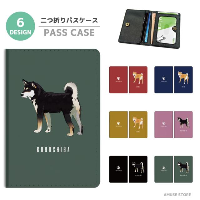 2つ折り パスケース 定期入れ カード 紛失防止 ストラップホール付 カバー 高級感 軽量 かわいい 革 ギフト プレゼント おしゃれ 柴犬 黒柴 犬 ワンちゃん シバ 愛犬 イラスト 足跡 韓国