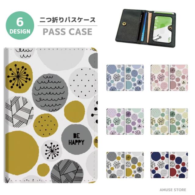 2つ折り パスケース 定期入れ カード 紛失防止 ストラップホール付 カバー 高級感 軽量 かわいい 革 ギフト プレゼント おしゃれ 北欧 水玉 総柄 カラフル トレンド 大人 韓国