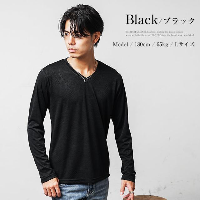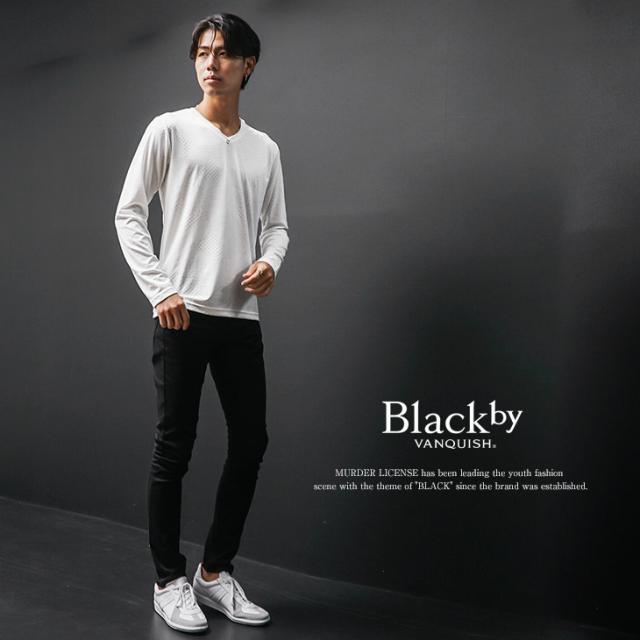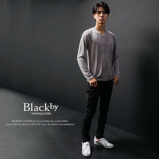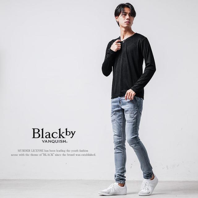 Tシャツ メンズ ブランド 長袖Tシャツ メンズ VネックTシャツ メンズ スリム カットソー 長袖 タイト ロンT 細身 秋 秋服 秋物 メンズファッション お兄系 オラオラ系 ちょいワル Black by VANQUISH ブラックバイヴァンキッシュ