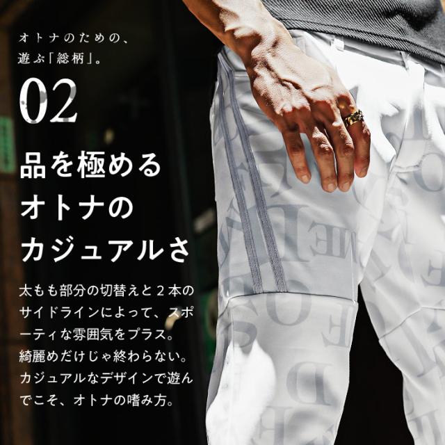 テーパードパンツ メンズ ストレッチ パンツ メンズ サイドライン イージーパンツ メンズ 総柄 ボトムス メンズ ブランド ポンチ素材 ロゴ スリム 総柄 スキニー 細身 春 春服 春物 メンズファッション お兄系 オラオラ系 ちょいワル ラグスポ