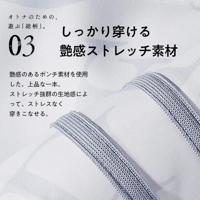 伸縮素材も配合しており、快適な着用を実現してくれるため、プライベートタイムに華を添えてくれる。