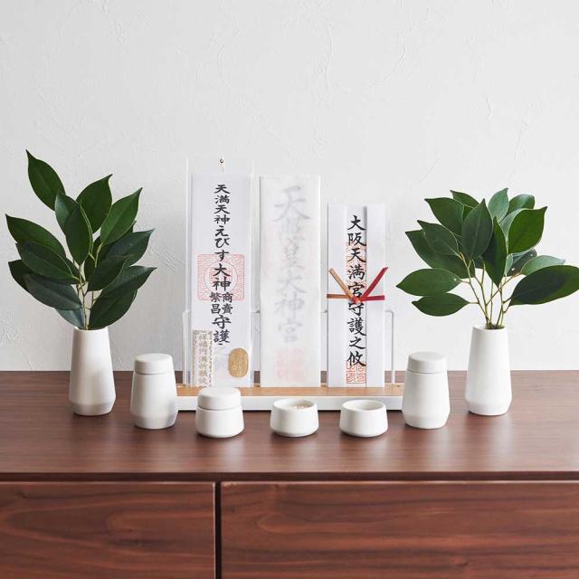 MM1 神具 タワー 7点セット ホワイト 山崎実業 tower 8189 榊立て 瓶子 水玉 皿 仏具 神具 お米 お水 お塩 神棚 仏壇 セット 7点セット 陶器 お供え 御供 お祀り おしゃれ シンプル モダン タワーシリーズ yamazaki