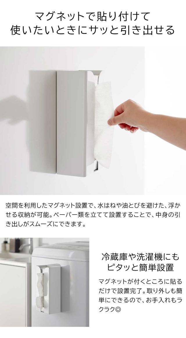 マグネットポリ袋&キッチンペーパーホルダー タワー ![]() 冷蔵庫や洗濯機にも ボックスタイプとソフトパックタイプどちらにも対応するホルダーです。キッチンや洗面まわりのよく使う所に、マグネットで浮かせて収納することで、水はねや油とびを軽減。壁面設置だから引き出しもスムーズにできます。キッチンペーパーやペーパータオルをセットして、冷蔵庫や洗濯機に貼り付けておけば、汚れが気になったときにサッと取り出して拭き掃除ができて便利です。使用頻度が高い、水まわりのお手入れに役立ちます。ポリ袋や使い捨て手袋などをセットして、見た目シンプルにスッキリ収納が可能。取り付け場所に合わせて、縦位置、横位置どちらでも使用できます。 ![]() ![]() ![]() ![]() ![]() ![]() ![]() ![]() ![]() ![]() ![]() |