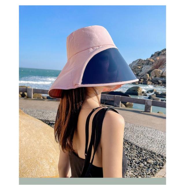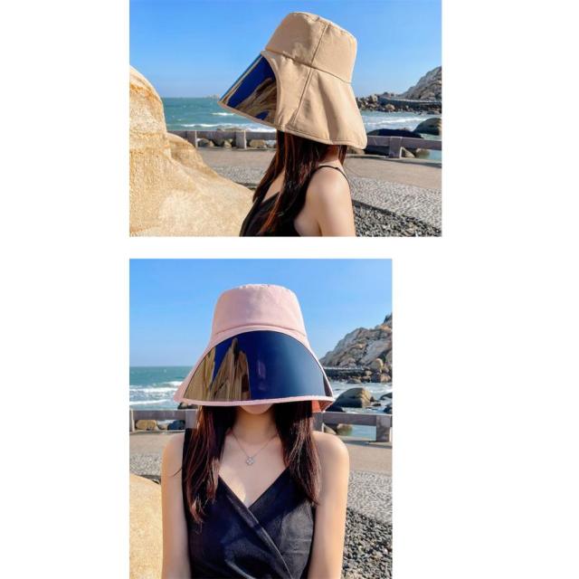 ◎紫外線カット機能のシールド付き、二重で日焼け止め、すっぽり顔保護できる