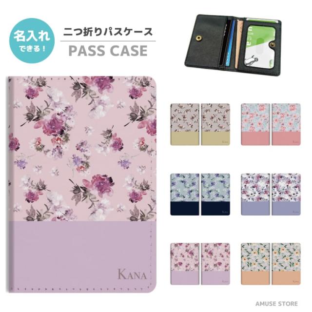 名入れ プレゼント 2つ折り パスケース 定期入れ 学生 カード 紛失防止 ストラップホール付 カバー 高級感 軽量 かわいい 革 ギフト おしゃれ 花柄 花 フラワー 韓国