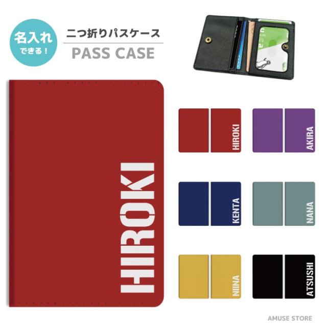 名入れ プレゼント 2つ折り パスケース 定期入れ 学生 カード 紛失防止 ストラップホール付 カバー 高級感 軽量 かわいい 革 ギフト おしゃれ ネーム ミリタリー サバイバル 韓国