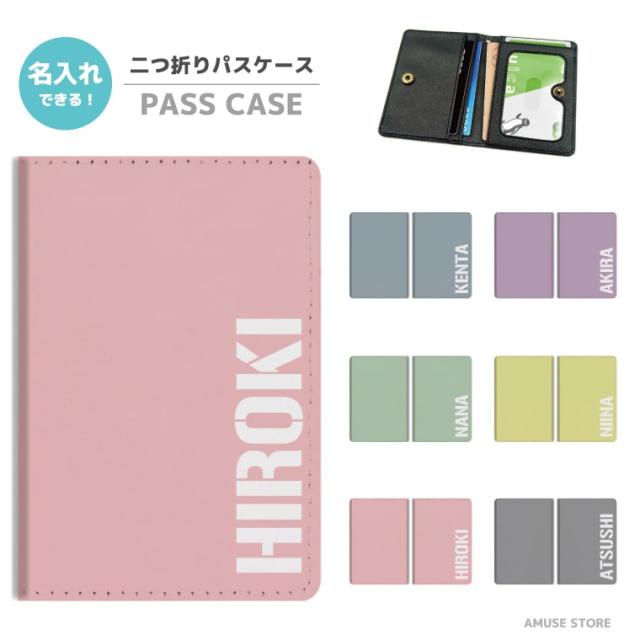 名入れ プレゼント 2つ折り パスケース 定期入れ 学生 カード 紛失防止 ストラップホール付 カバー 高級感 軽量 かわいい 革 ギフト おしゃれ ネーム ミリタリー サバイバル パステル 韓国