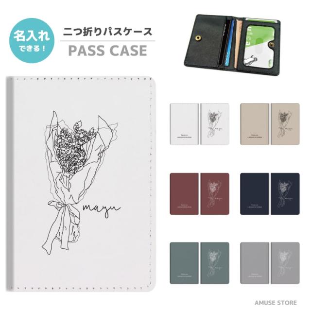 名入れ プレゼント 2つ折り パスケース 定期入れ 学生 カード 紛失防止 ストラップホール付 カバー 高級感 軽量 かわいい 革 ギフト おしゃれ 花柄 束 パステル 大人 クール 韓国